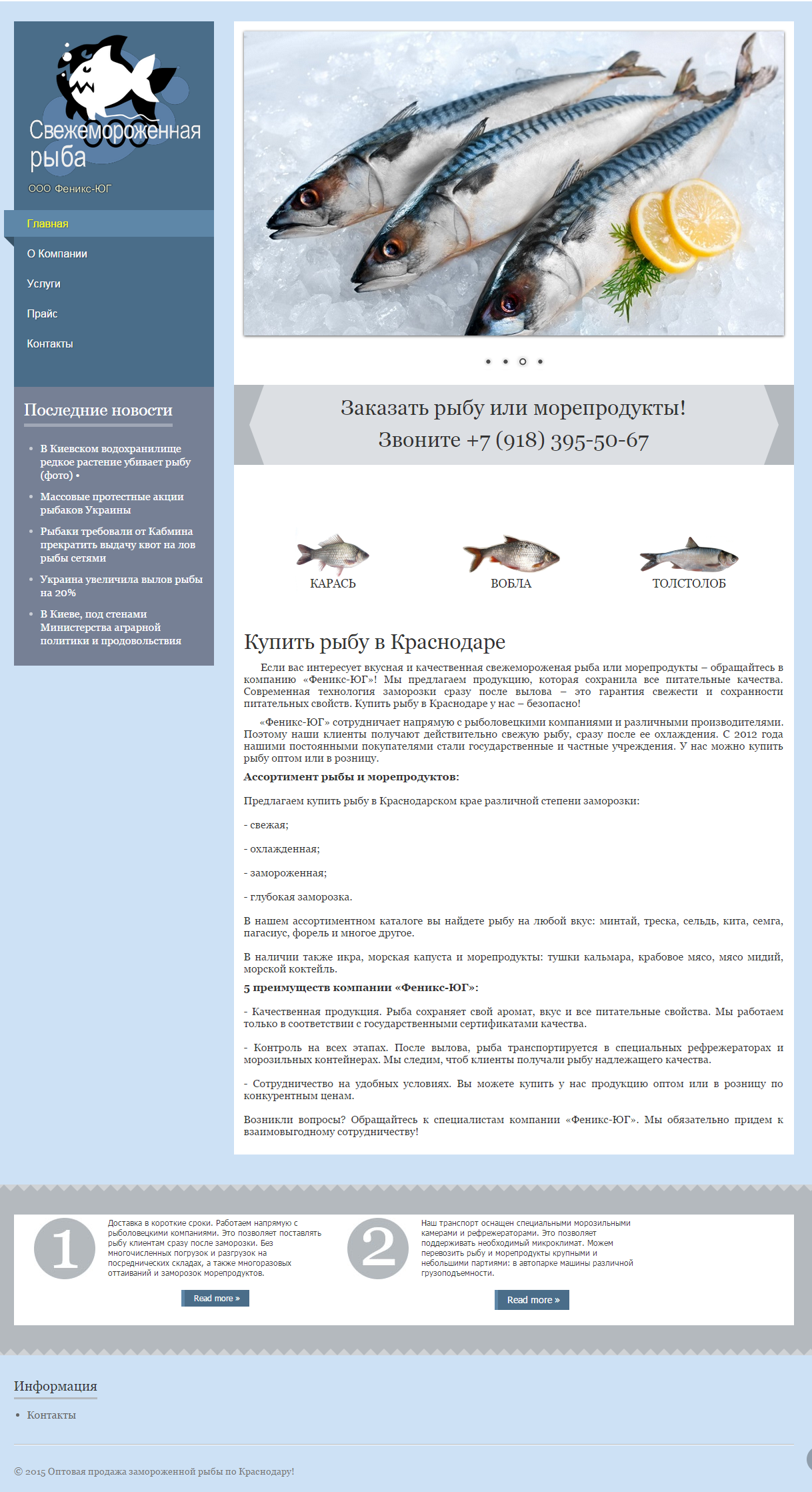 Рыба: продажа морепродуктов оптом и в розницу. Продвижение сайта.